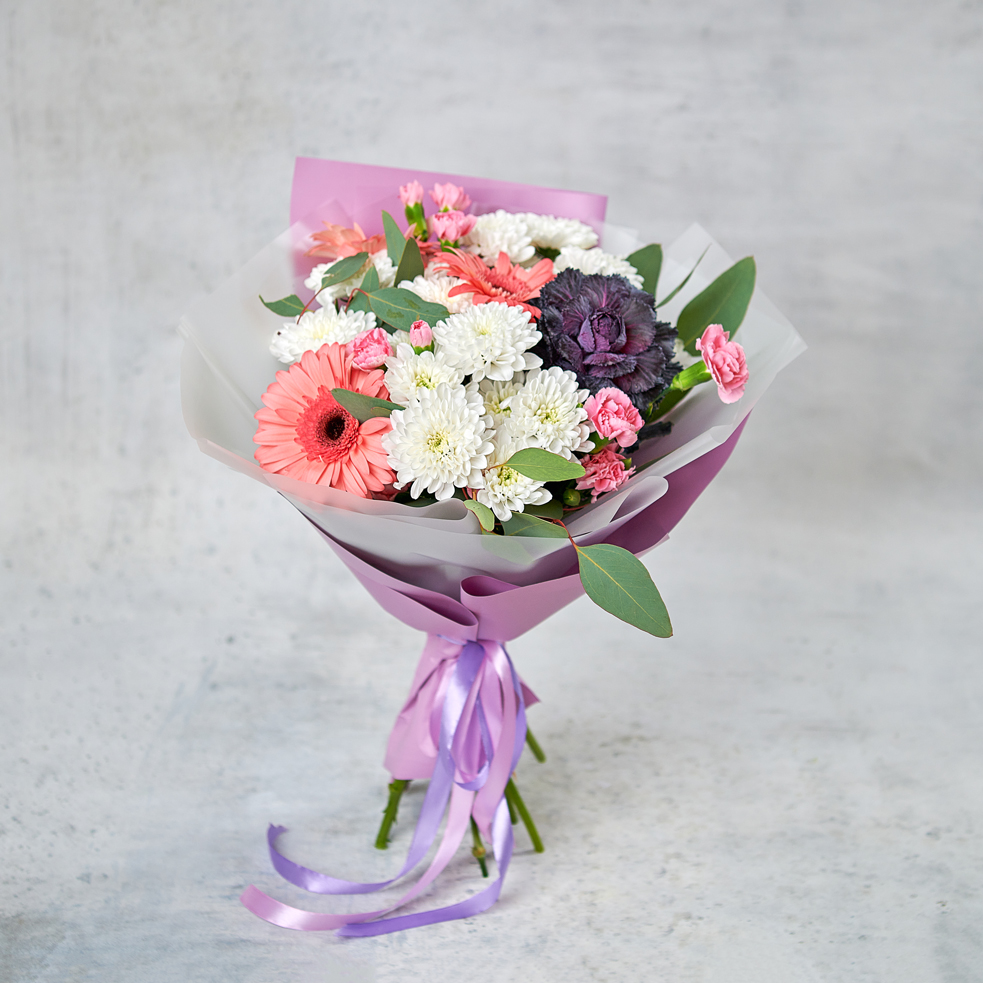Глубокое сочетание розового и завораживающего фиолетового создадут магический эффект, напомнят о вечернем небе и сумеречных фонарях. Романтический букет отлично подойдет для свиданий, дней рождений или в качестве подарка без повода.Возможны небольшие изменения элементов. Общий вид и композиция букета будет сохранена.В составе присутствует сезонный цветок, который может быть заменен, исходя из наличия товара.