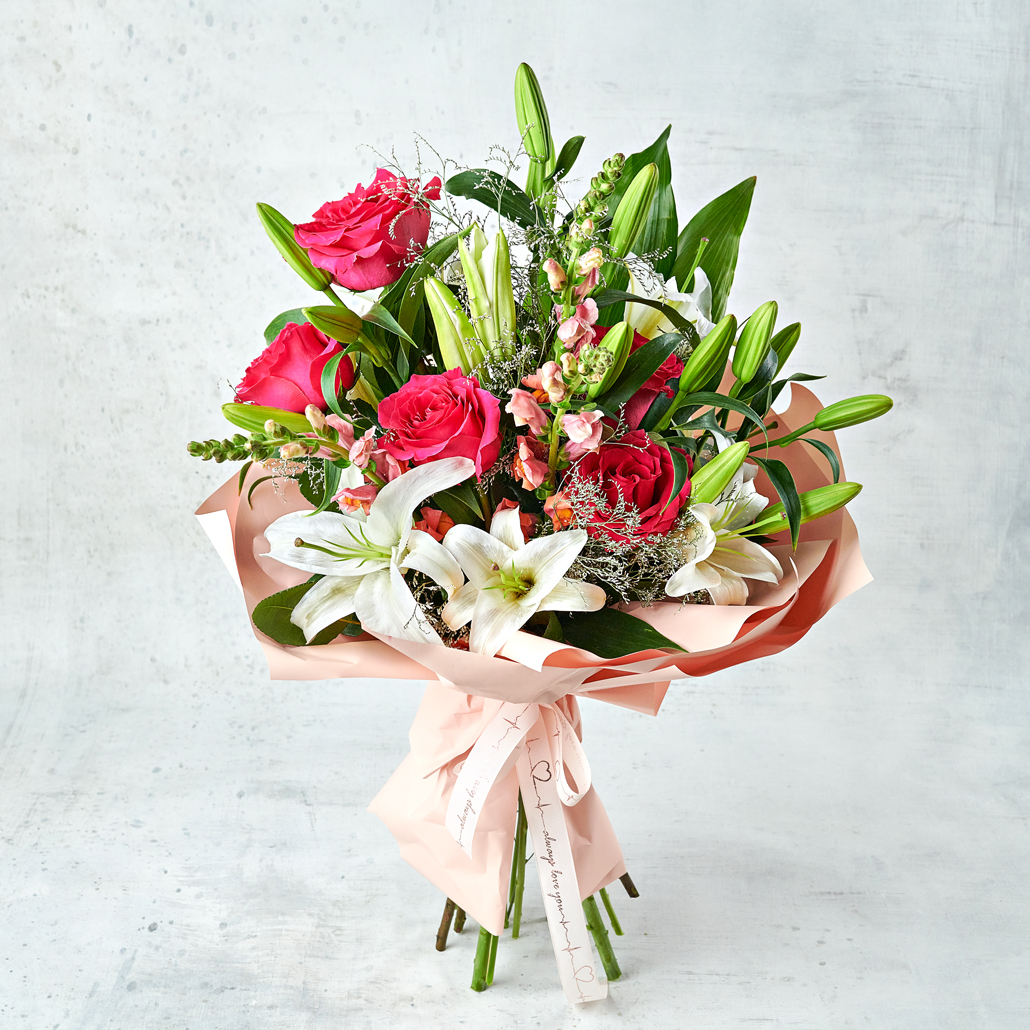 Французский ароматный цветочный сад, с пышными бутонами роз и изящной лилией, подчеркнутые нежной упаковкой, станут отличным подарком для любого повода. Возможны небольшие изменения элементов. Общий вид и композиция букета будет сохранена.