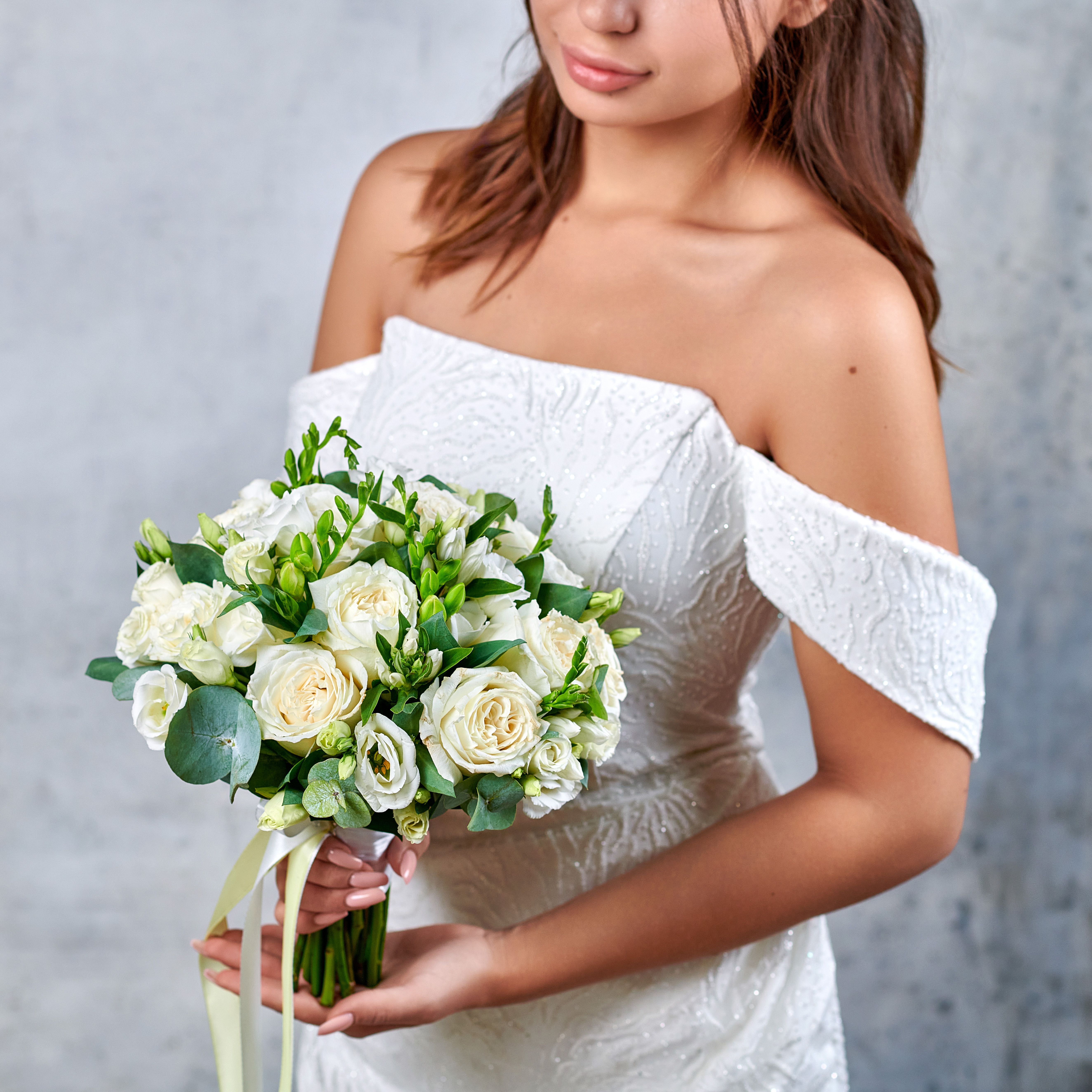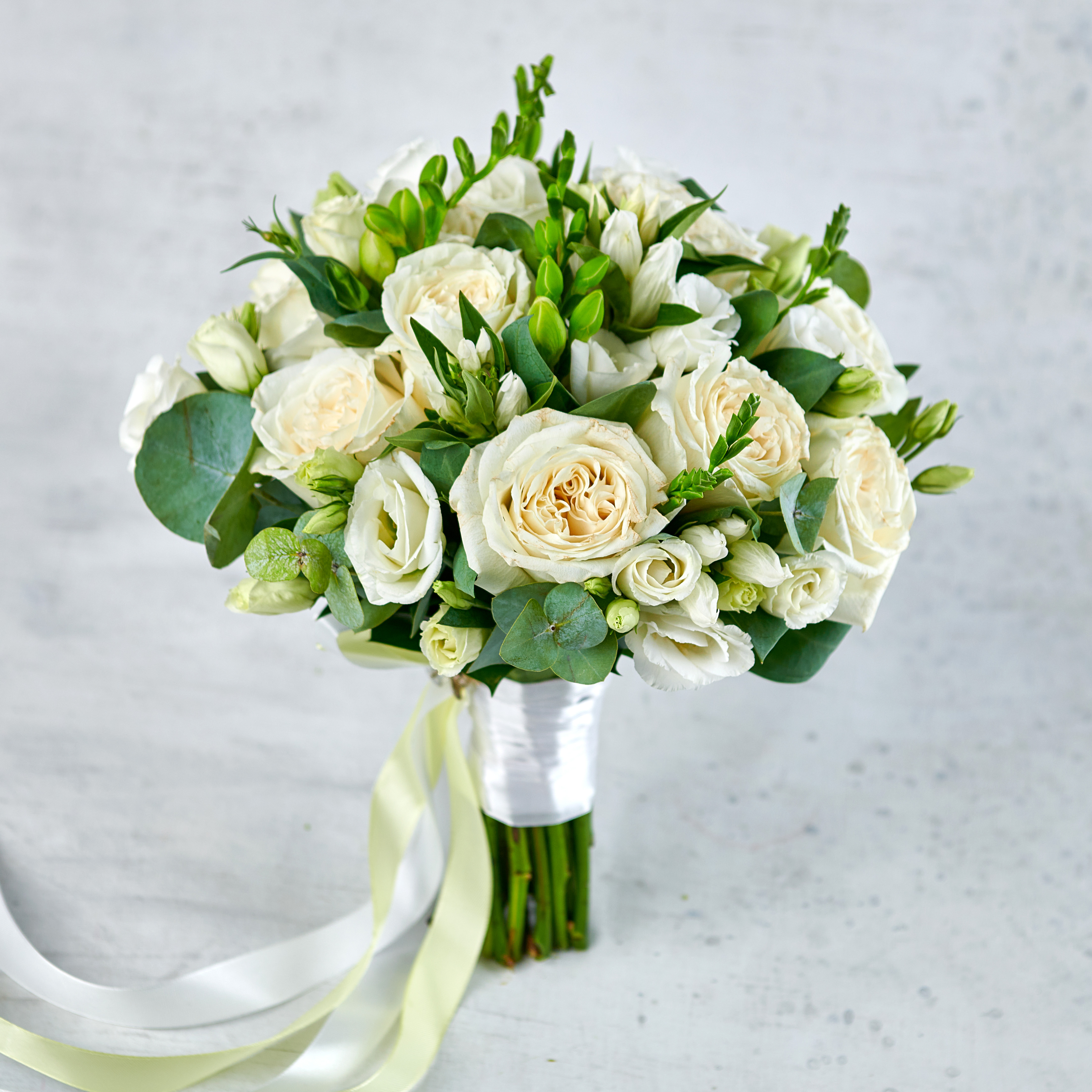 Классический идеальный вариант в универсальной гамме. Букет невесты на портбукетнице - идеальный вариант для теплых летних дней, такой вид букета помогает сохранить цветы и счастливые лица на свадебных фотосессиях , а также спасает от тревог , ведь цветы не требуют дополнительного ухода и внимания. Возможны небольшие изменения элементов. Общий вид и композиция букета будет сохранена.