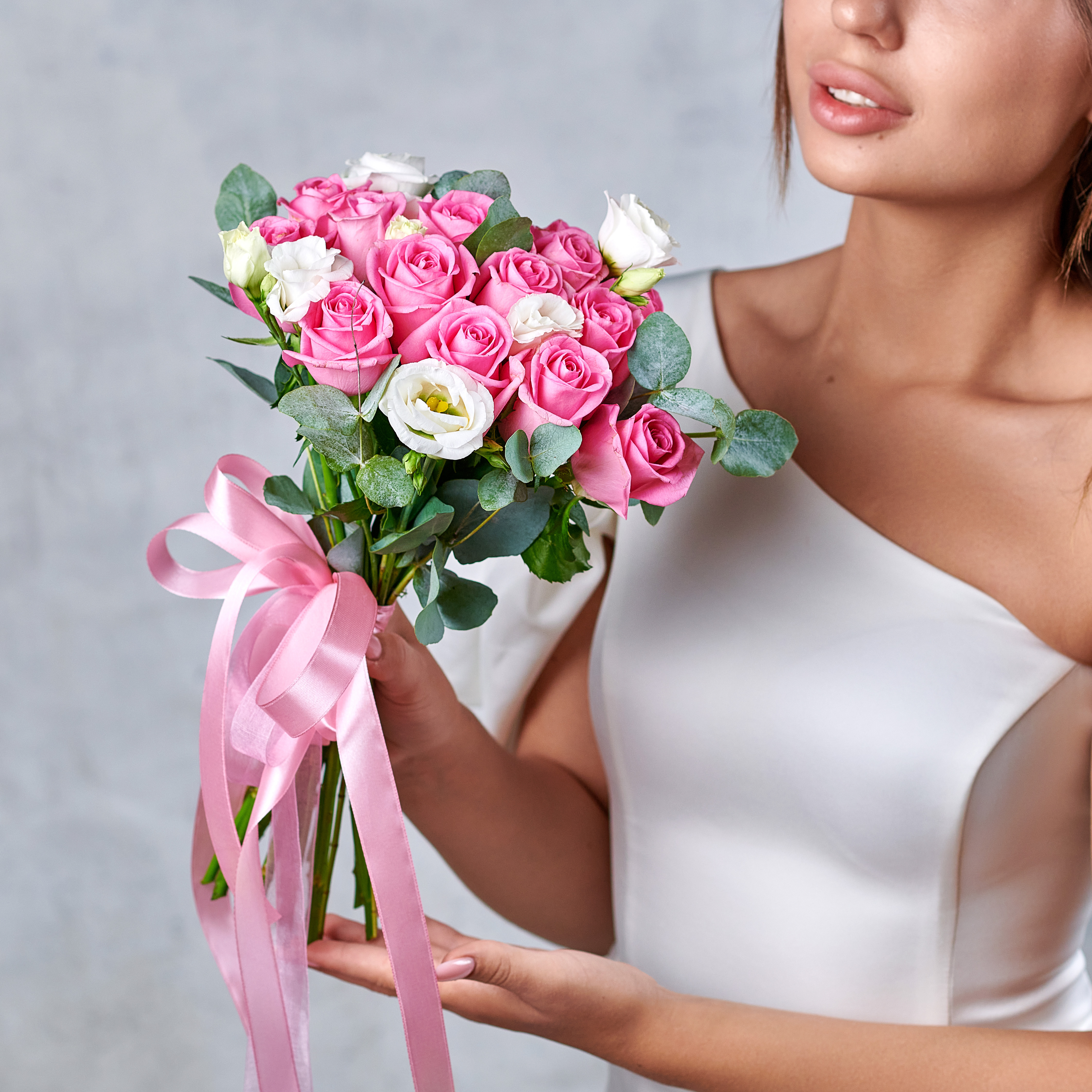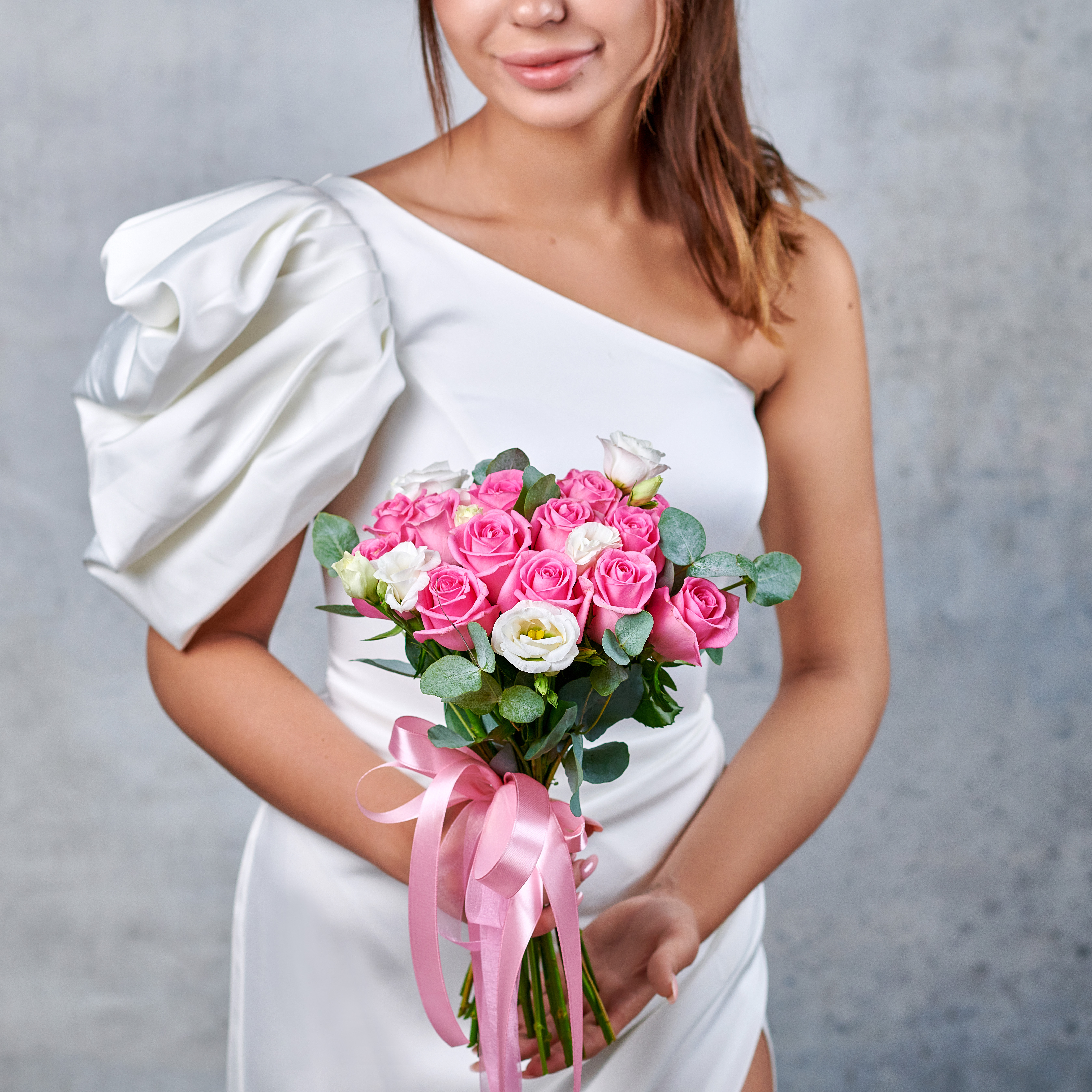 Нежные, трепетные оттенки подчеркнут красоту юности и нежность трогательных мгновений. Особенные букеты для незабываемых дней. Классический состав и благородная зелень - идеален для торжеств. Возможны небольшие изменения элементов. Общий вид и композиция букета будет сохранена.