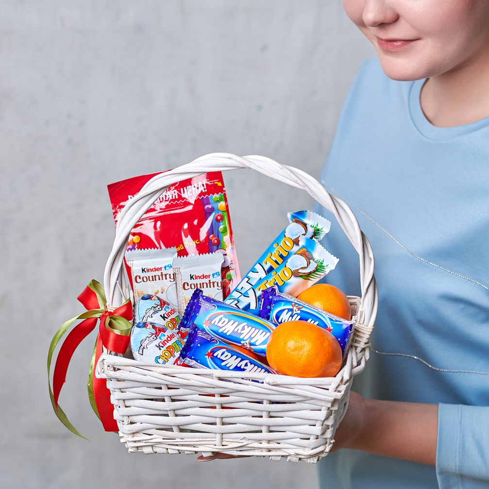 Сладкая композиция с ароматами рождества - это, когда чувствуется запах цитрусовых, видно как открываются цветные упаковки и слышен звонкий смех близких. Возможны небольшие изменения элементов. Общий вид и композиция букета будет сохранена.