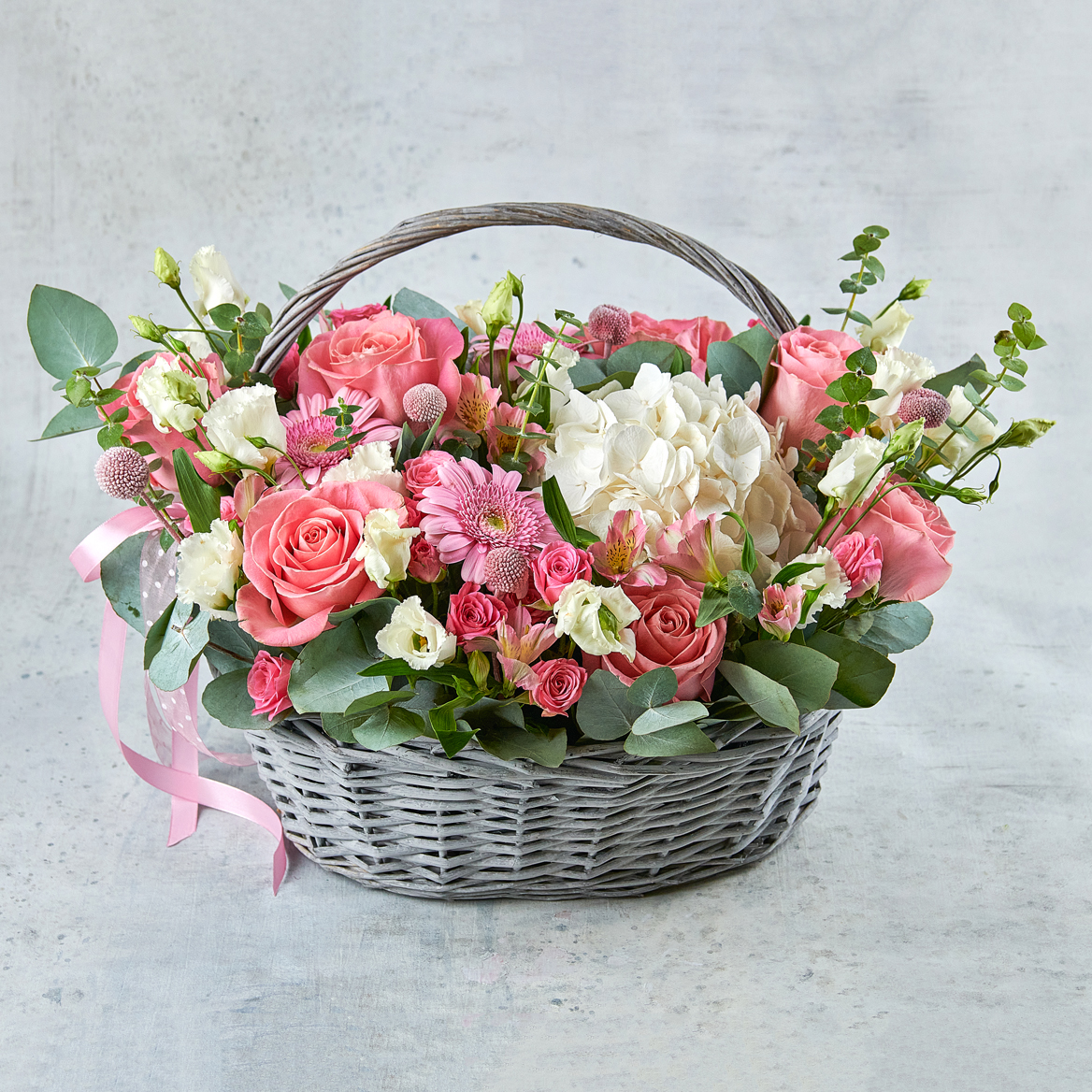 Настоящая мечта всех девушек. Идеальная цветовая палитра, гортензия в составе и нежные розы, что может быть прекраснее неправда ли?Возможны небольшие изменения элементов. Общий вид и композиция букета будет сохранена.В составе присутствует сезонный цветок, который может быть заменен, исходя из наличия товара.