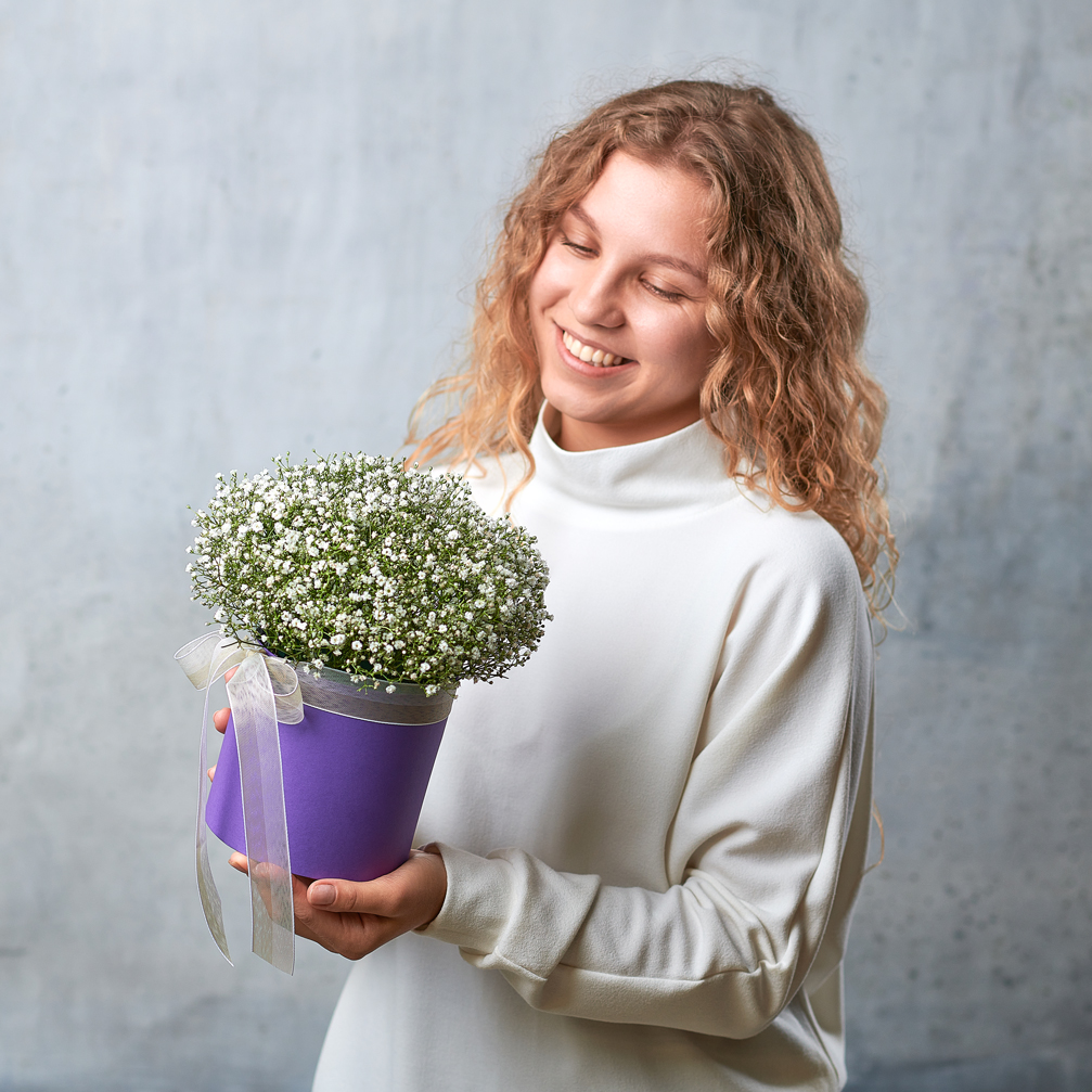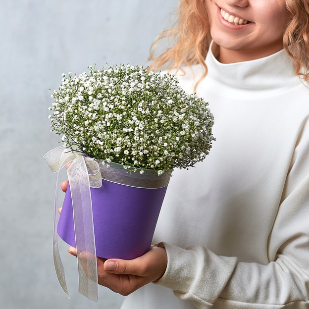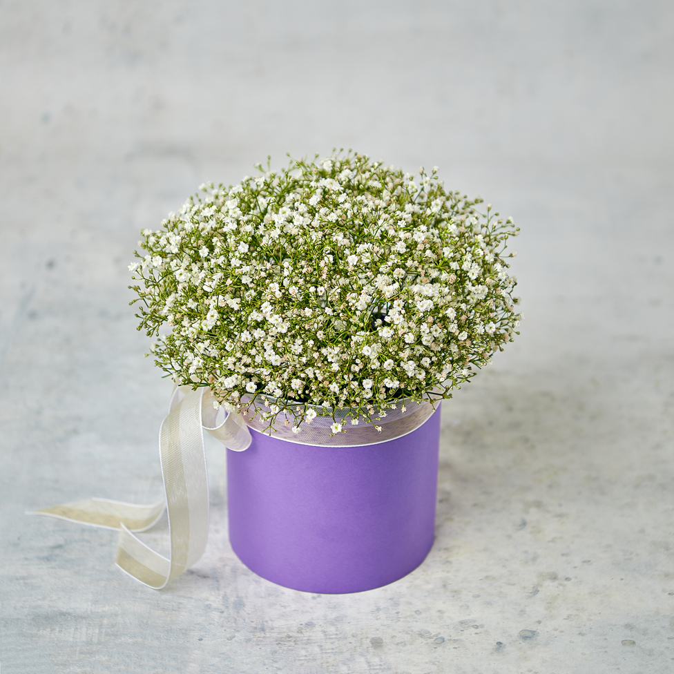 Настоящий хит цветочных подарков - снежная гипсофила. Такой подарок точно вызовет восторг и будет радовать получателя очень долго, так как гипсофила сохраняет свой вид даже после высыхания, нередко используется в качестве сухоцвета и декоративного элемента. Возможны небольшие изменения элементов. Общий вид и композиция букета будет сохранена.