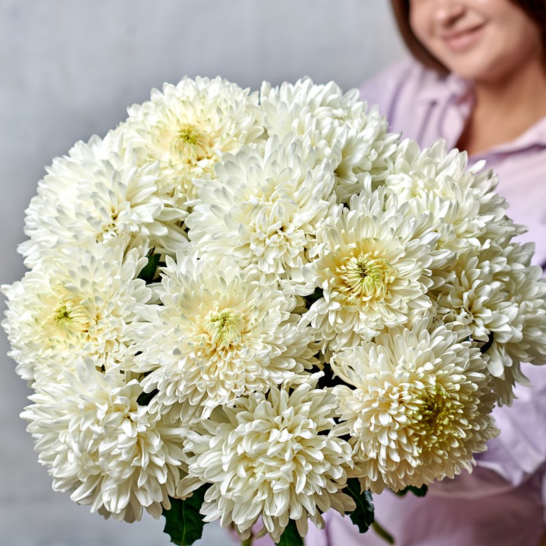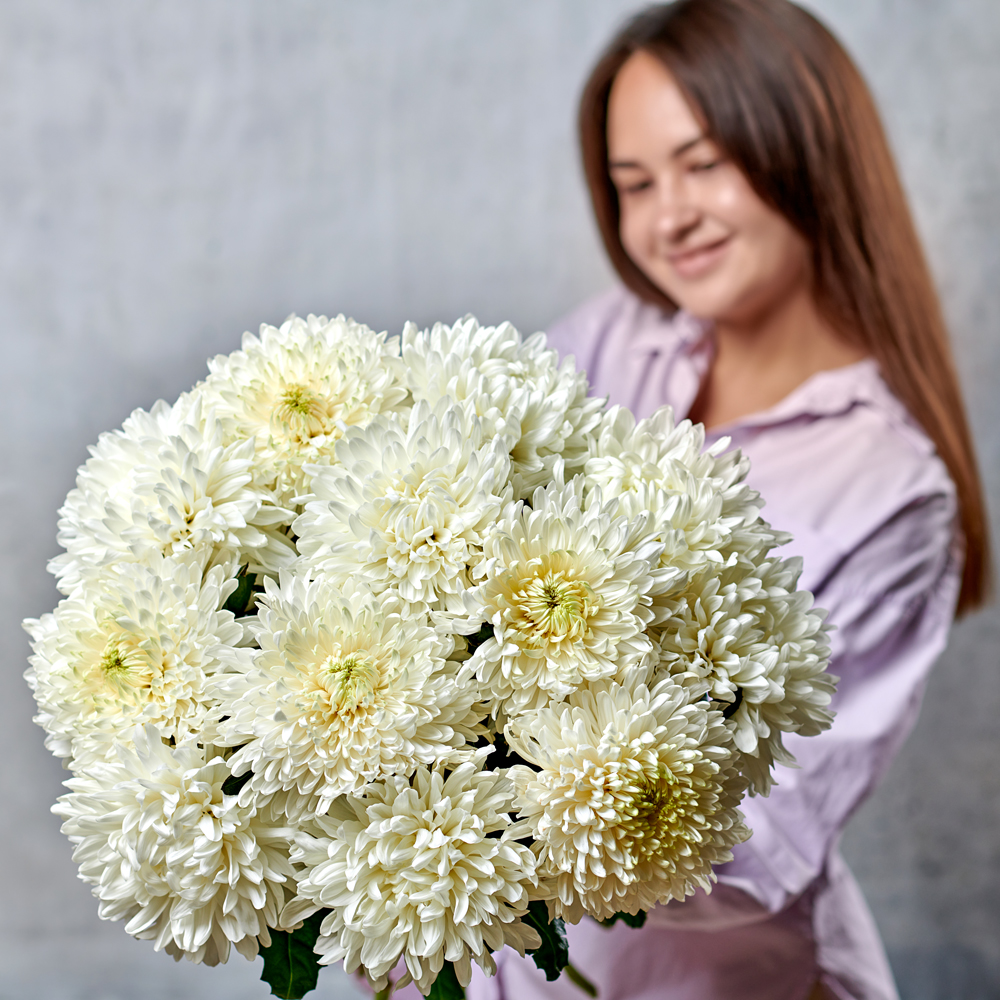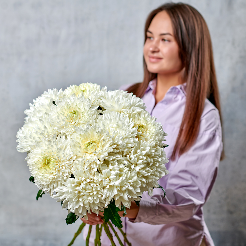 Хризантема "Антонов" имеет один из самых крупных бутонов, ее часто выбирают в подарок благодаря невероятному объему и шарообразной форме. Каждый лепесток складывается в единую шапку, а крепкий стебель подчеркивает величественность и красоту цветка. Такая хризантема будет прекрасно смотреться, как самостоятельный подарок и в букете из нескольких цветков.