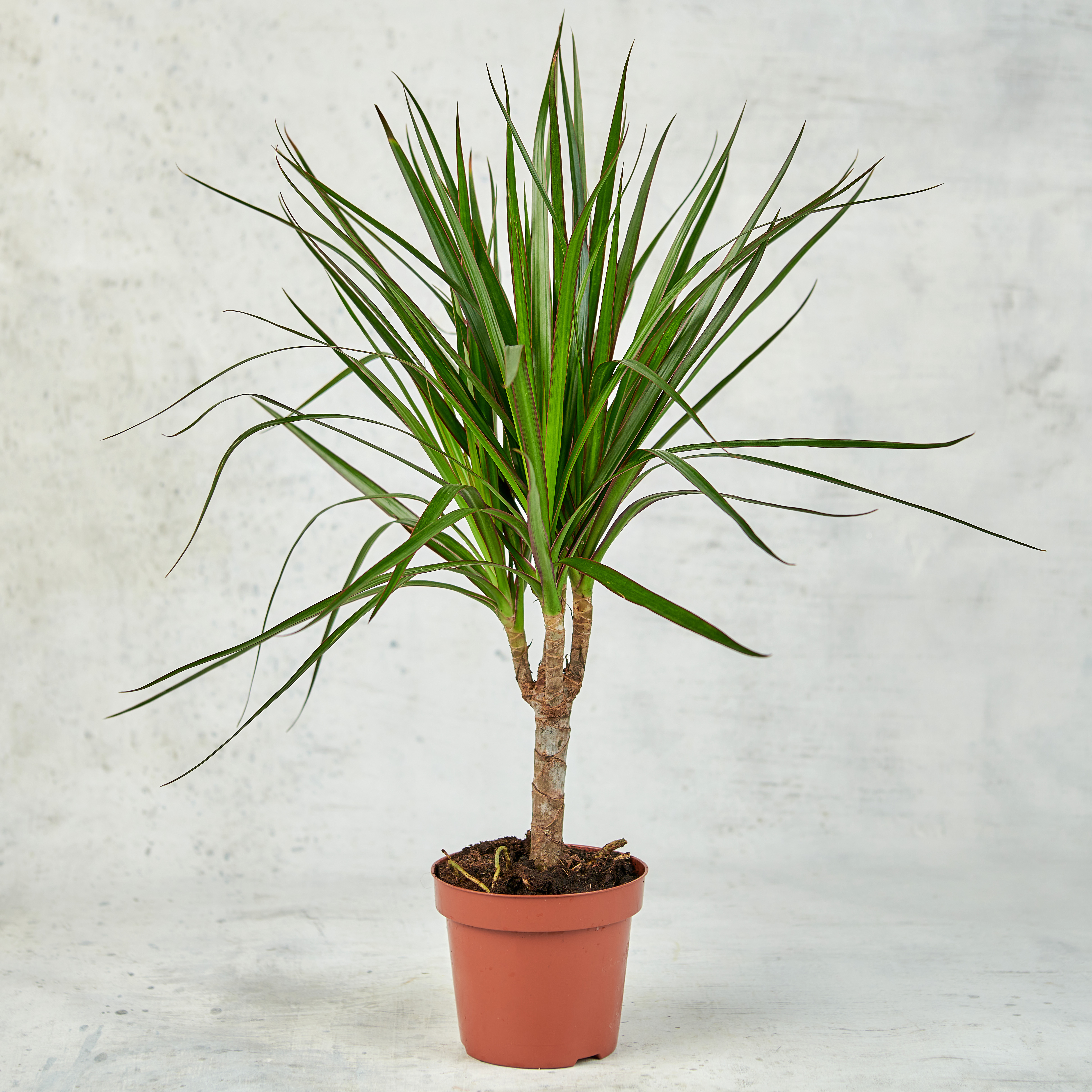 Драцена - популярное комнатное растение, в переводе название означает "самка дракона", традиционно считается, что дерево драцены приносит счастье, любовь и благополучие, отдельные виды даже переводятся как "счастливый бамбук". Драцена имеет оголенный древесный стебель и вытянутые темно-зеленые перовидные листья. Цветок станет прекрасным украшением интерьера и добавит уюта дому. Драцены очень просты в уходе, выбирайте притемненное место, вдали от прямых солнечных лучей, для некоторых видов подойдет рассеянный свет. Как и со всеми растениями, лучше избегать батарей, плит и отопительных приборов рядом с кашпо, избегайте перепада температур. Листья драцены стоит протирать влажной тряпкой, очищая от пыли раз в 1-2 недели. Зимой и летом, при повышении температуры в доме до +25 градусов, можно опрыскивать листья холодной водой. Для корневой системы драцены подойдут высокие, но не широкие горшки. Возможны незначительные изменения элементов. Общий вид и композиция будет сохранена.
