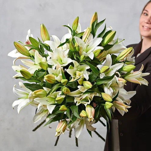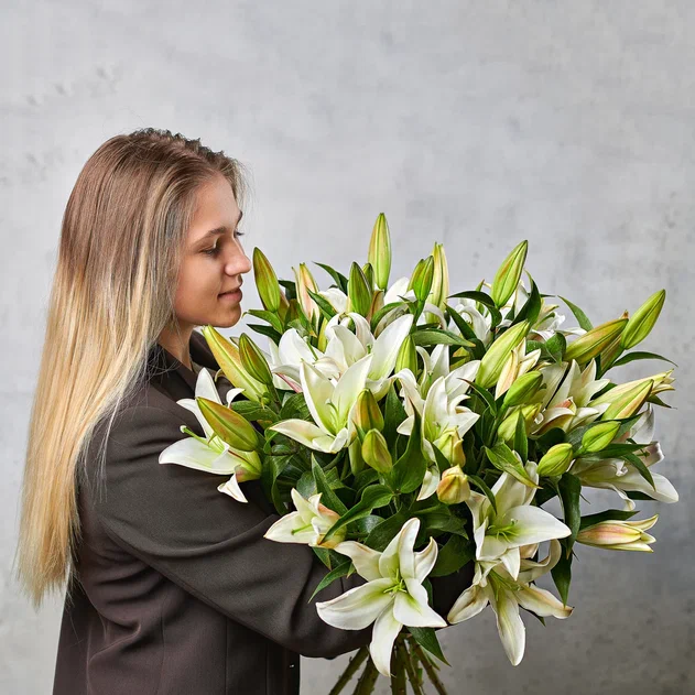 Лилия - один из самых красивых цветов в мире, символизирует чистоту, изящество и благородство. Ее выбирали своим символом французские короли, стойкая, ароматная, с огромными цветами будет радовать получательницу не один день.