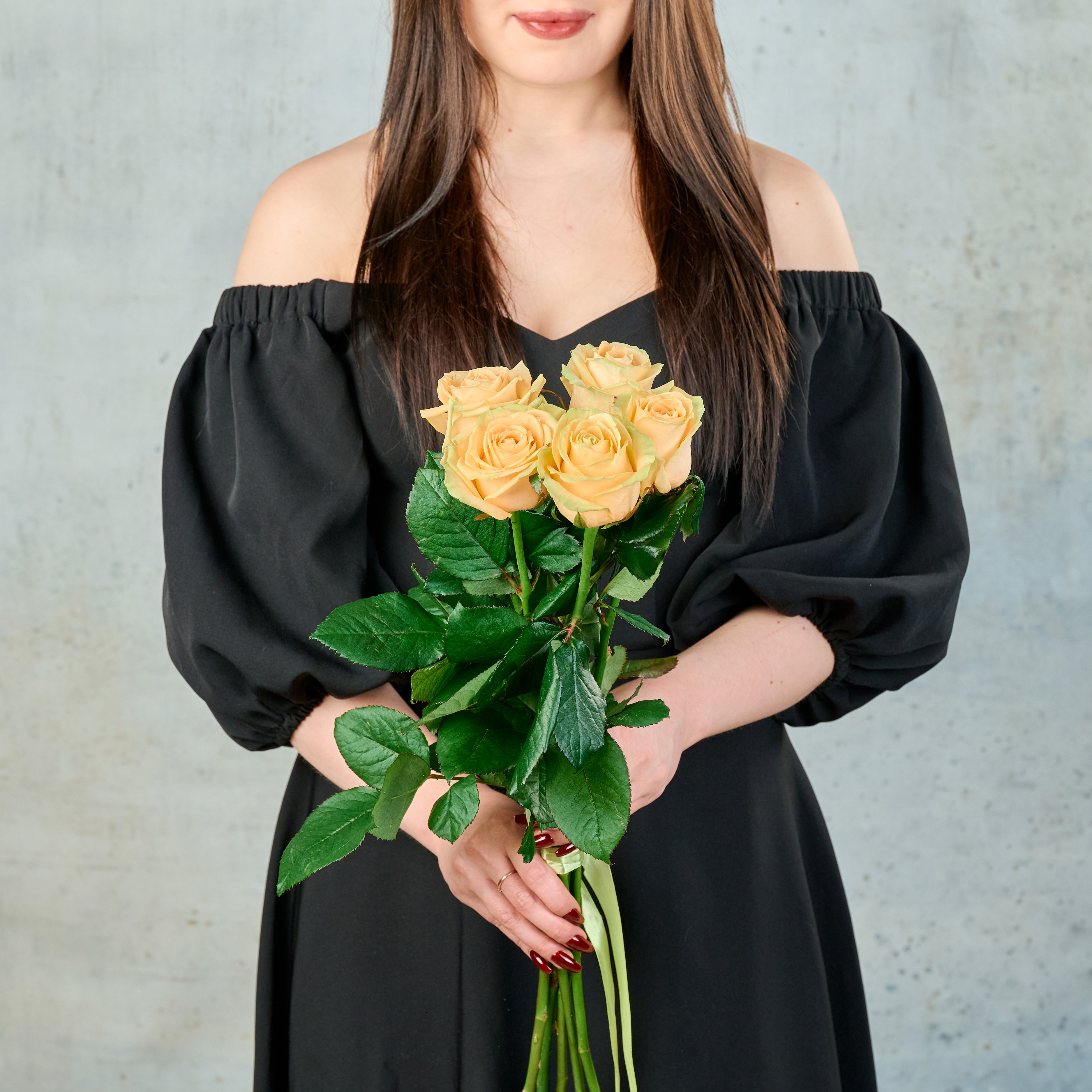 Букет из 5 кремовых Российских роз